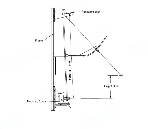 The pendulum impact hammer test apparatus mainly consists of a pendulum with its upper end swinging in a vertical plane around its pendulum axis. The pendulum axis is 1000mm above the measuring point. The pendulum consists of a rigid pendulum axis and a matching impact element. For test samples that are heavier, larger in size or difficult to carry, a handheld pendulum can be used for testing.