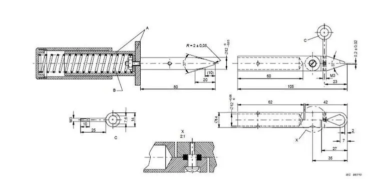 1. The Test Finger Nail is mainly used for the shocking or the non-removable parts of contacting with moving parts to determine whether it can withstand the mechanical pressure in normal use ,to reach the required level of protection test.